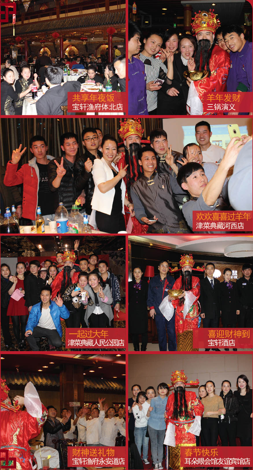 發(fā)布日期:所屬欄目:寶軒動(dòng)態(tài)2015年2月18日除夕之夜,萬家燈火,舉國同慶。寶軒投資集團(tuán)旗下耳朵眼會(huì)館、津菜典藏、寶軒漁府、禪素、三鍋演義、寶軒酒店13家餐飲、酒店無一例外在結(jié)束了一天繁忙緊張的工作后,至親家人們圍坐在一起,開始享用豐盛的年夜晚宴和辭舊迎新跨年晚會(huì)。