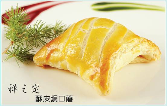 277套餐中“酥皮焗口蘑”,此菜運(yùn)用了港式面點(diǎn)的技法,將口蘑去蒂留精,包裹上酥皮,口感酥脆而細(xì)膩,味道甜香而迷人。
