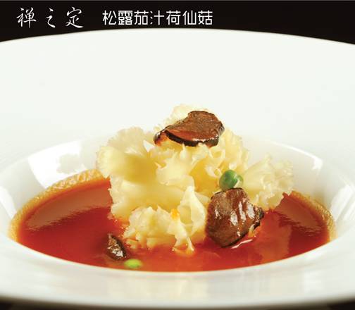 577套餐中“松露茄汁荷仙菇”,看過(guò)《舌尖上的中國(guó)》的觀眾對(duì)松露都不會(huì)陌生,其被譽(yù)為“世界三大珍肴”之一。荷仙菇,又名花瓣菇,是一種藥食兼用的大型真菌,含有十分豐富的多糖,具有卓越抗癌、免疫調(diào)節(jié)、提高造血功能等功效。此菜品的食材選用,堪稱“強(qiáng)強(qiáng)聯(lián)合”。如此名貴的食材,考驗(yàn)的是廚師烘托食材本味的本領(lǐng)。