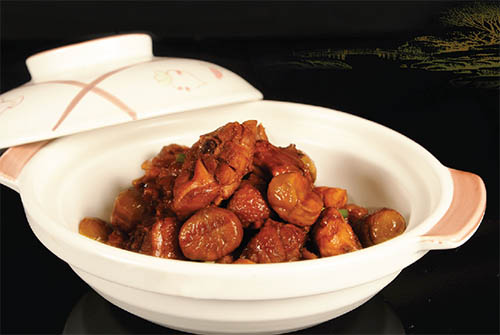 黃燜栗子雞:栗子中富含不飽和脂肪酸和維生素,是抗衰老、延年益壽的滋補(bǔ)佳品,具有益氣健脾、補(bǔ)腎壯骨、厚補(bǔ)胃腸的作用,與雞肉搭配,美味養(yǎng)生,適宜秋季進(jìn)補(bǔ)。