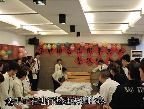 今年寶軒酒店的周年慶慶祝方式和往年有所不同。沒有豐盛美味的佳肴,沒有歡歌笑語的節(jié)目表演,取而代之的是一陣陣熱潮如浪的加油吶喊聲和鼓掌喝彩聲。原來今年的酒店周年慶,家人們選擇了一種特殊的方式為她慶祝——舉辦了一場別開生面的技能大賽。