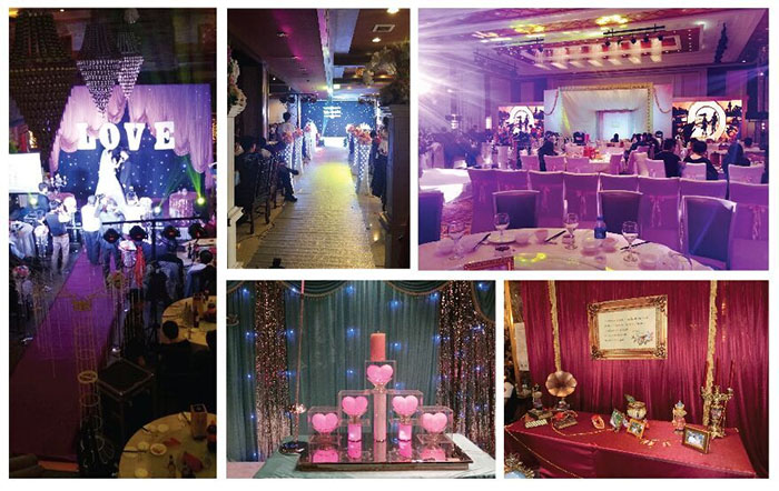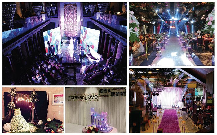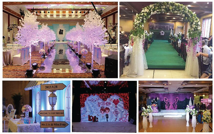 變化多樣的場(chǎng)地布置——可以打造出或奢華時(shí)尚風(fēng)格;或個(gè)性定制風(fēng)格;或溫馨浪漫風(fēng)格;或唯美中式風(fēng)格;或清真宗教風(fēng)格的婚禮氛圍。