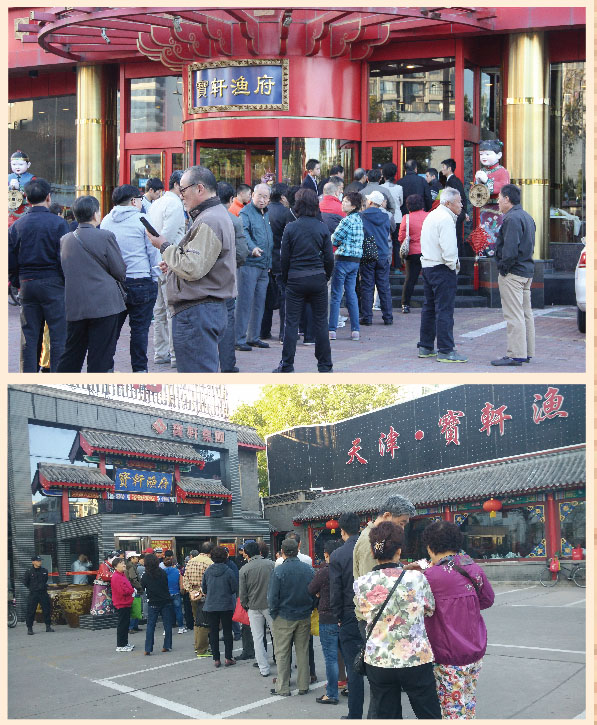 當天早晨與往年一樣,寶軒漁府每家店門口從凌晨就有很多忠實粉絲排隊等號了,孫師傅3點30就來到了永安道店門口;王大爺3點40就到了體北店;紅橋店、南開店、食品街店、大胡同店也幾乎都是凌晨4點鐘就有人開始排隊等號了,直至7點30,各家店門口都是人潮涌動,排隊成龍,粗略一數(shù)就有七八十人,最多的永安道店、紅橋店已達200余人,隨著時間的推移,排隊預訂的人也越聚越多,火爆場面超越往年。