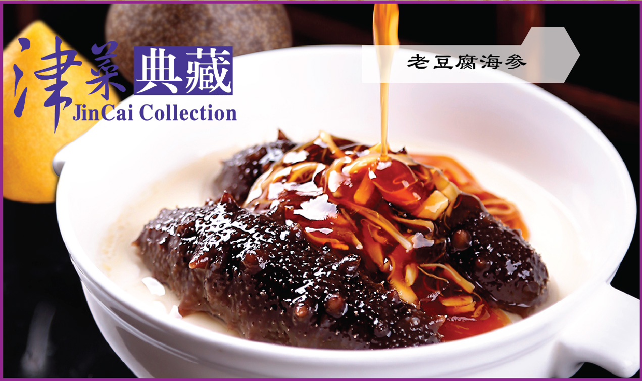 津菜典藏創(chuàng)新傳統(tǒng)菜,將海參與老豆腐融合,升華了傳統(tǒng)小吃?!侗静菥V目拾遺》中記載:海參,味甘咸,補(bǔ)腎,益精髓,攝小便,壯陽(yáng)療痿,其性溫補(bǔ),足敵人參。與富含蛋白質(zhì)的豆腐相結(jié)合,堪稱(chēng)初冬溫補(bǔ)的最佳搭檔。