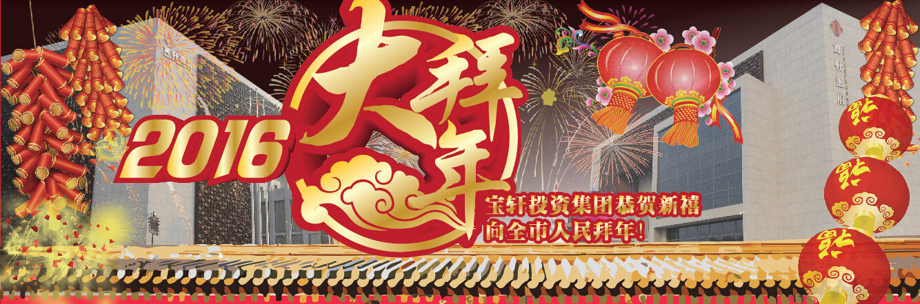 凱歌辭歲,旭日迎春。新年的鐘聲即將敲響,我們將告別2015年共同經(jīng)歷過的激情歲月,一起踏上2016年屬于我們的嶄新奮斗征程。在這辭舊迎新之際,我謹代表寶軒投資集團全體家人向全市人民致以新春的祝福!