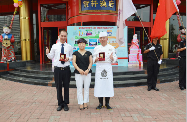 集團范總裁親自為寶軒漁府體北店十年以上忠誠敬業(yè)員工頒發(fā)純金司徽