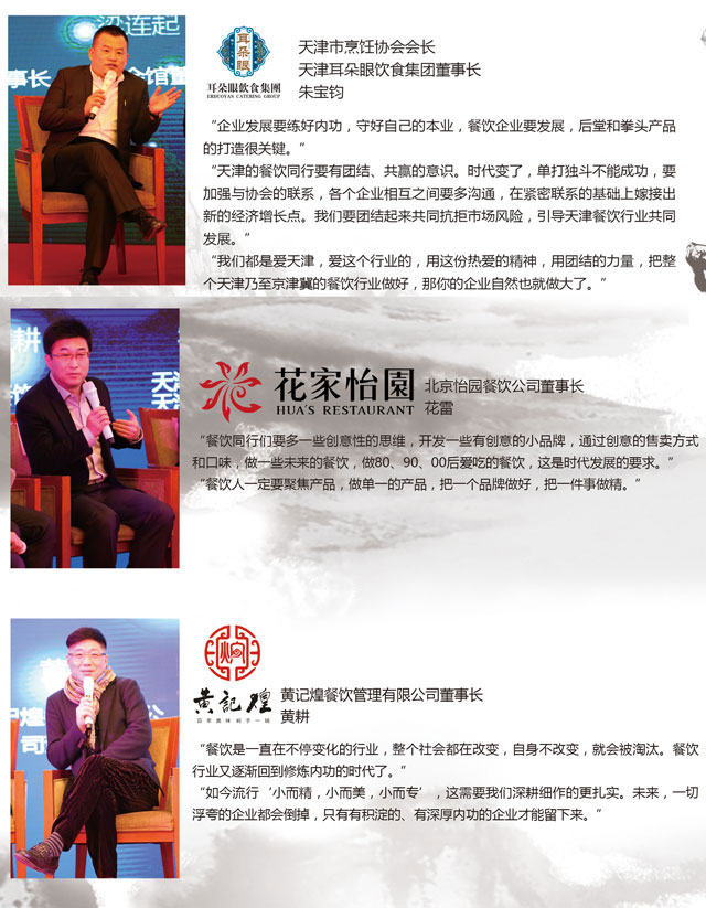 此次“濱海論劍”,中國頂級餐飲人為天津同行帶來了最具前瞻性的經營理念,對于推動業(yè)內的深度交流和行業(yè)的蓬勃發(fā)展,具有十分重要的意義。大咖們直擊經營問題根源,分享成功經驗,分析復雜市場,指點餐飲江湖風云變幻。在場的天津餐飲同仁們受到啟發(fā)和鼓舞,他們紛紛表示,此次論壇“干貨”滿滿,多種觀念交流碰撞,對自身企業(yè)經營很有啟發(fā),希望朱會長今后能多舉辦類似的活動,加強與國內行業(yè)精英的交流,共同促進天津餐飲業(yè)的蓬勃發(fā)展!