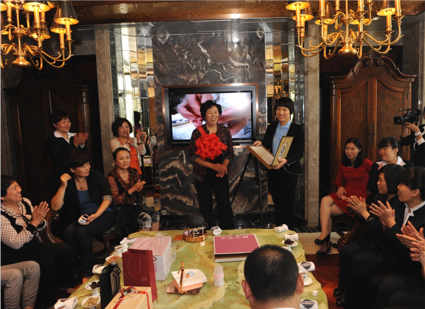面對老員工的離職,范總也是感慨良多,“千言萬語道不盡的感激。從2001年開始,高姨伴隨著企業(yè)闖過了很多難關(guān),也見證了寶軒從曾經(jīng)的青澀到如今的輝煌。對工作一絲不茍,甚至主動放棄了許多休假,在即將退休的時候,仍然對工作一點都不松懈,這種負(fù)責(zé)任、有擔(dān)當(dāng)?shù)墓ぷ骶裰档梦覀內(nèi)W(xué)習(xí)?,F(xiàn)在高姨雖然即將退休,但我們相信高姨的心會一直留在寶軒,隨時歡迎高姨?;丶铱纯矗 彪S后,范總送上了為高會計精心準(zhǔn)備的禮物。漁府版塊運(yùn)營總監(jiān)李總說:“我們都習(xí)慣的稱高會計為高姨,從熟悉到敬重,再到今天的戀戀不舍,我想除了親人和同事,與高會計最親近的就是筆了,一支鋼筆,小小的禮物,祝您健康,心情愉快!”高會計自己也激動的說:“我一生中算上這次共經(jīng)歷過兩次退休,但兩次截然不同。第一次是在國企,辦好了所有的退休手續(xù)就悄然離開了,對企業(yè)沒有太多的留戀。還有一次就是今天,在寶軒。真的是出乎我意料,寶軒給了我一個太大的驚喜。其實我并沒有做什么,也沒有為企業(yè)做過什么突出的貢獻(xiàn),我只是一名普通的財務(wù)工作人員,做好了自己的本職工作而已,但沒有想到我們集團(tuán)的這么多高層領(lǐng)導(dǎo)會為我舉辦如此隆重的歡送會,還親自為我挑選禮物。在寶軒工作十二年,每年都能看到她的進(jìn)步和發(fā)展……”最后,寶軒投資集團(tuán)總裁范總、漁府版塊運(yùn)營總監(jiān)李總和財務(wù)總監(jiān)郝總共同為高會計頒發(fā)了“光榮退休”的榮譽(yù)證書。財務(wù)部門集體為高會計準(zhǔn)備了一本厚重的相冊,相冊中記錄了高會計在寶軒度過的點點滴滴,承載了與大家在一起的歡樂時光。大家也都紛紛為高姨送上了表達(dá)自己心意的禮物。