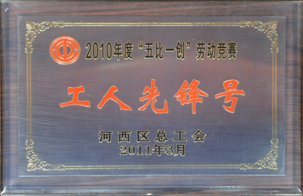 2010年度‘五比一創(chuàng)’勞動競賽 工人先鋒號獎牌 發(fā)布日期:2013-08-02所屬欄目:資質(zhì)榮譽(yù) 2010年度‘五比一創(chuàng)’勞動競賽 工人先鋒號獎牌